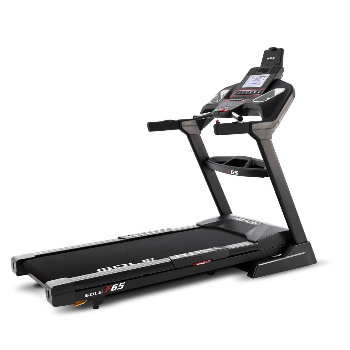 Tętno można mierzyć za pomocą sensorów dotykowych dłoni lub pasa telemetrycznego. Bieżnia oferuje również wyjątkowo szeroką i bezpieczną dla stawów powierzchnię do biegania o wymiarach 156 cm x 56 cm, która w żaden sposób nie odbiega od sprzętu studyjnego. Bez względu na to, czy jesteś początkującym czy maratończykiem - kupując F65 będzie to strzał w dziesiątkę.
